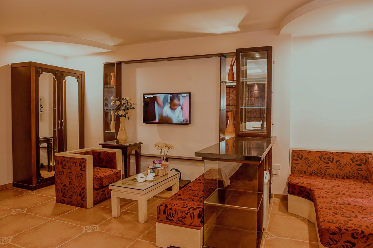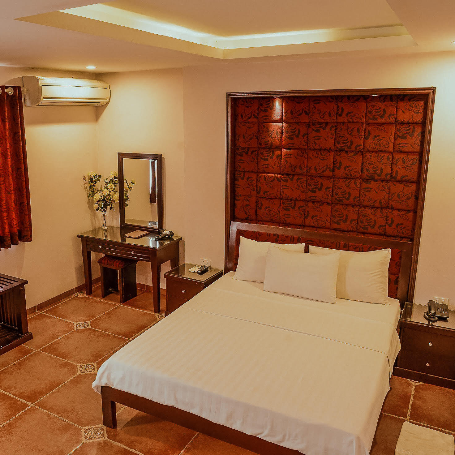 Tất cả nội thất khách sạn đều được làm từ gỗ quý tự nhiên, trang thiết bị trong phòng hiện đại như điều hòa, truyền hình cáp, phòng tắm nóng lạnh, tủ quần áo, giường đệm Kim Đan, sử dụng miễn phí mạng Wifi internet tốc độ cao. Khách sạn nào cũng được trang bị máy phát điện dự phòng khi xảy ra mất điện.